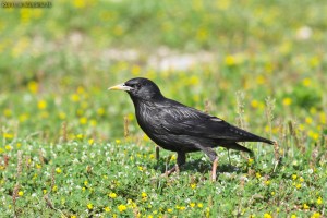 Muitas vezes confundido com um melro, distingue-se deste pela postura mais esguia, a plumagem mais brilhante e pelas patas rosadas. É uma espécie residente em Portugal que apresenta hábitos gregários, ou seja, costuma formar bandos de dezenas ou mesmo centenas de indivíduos. O Estorninho-preto distribui-se unicamente pela Península Ibérica e pelo sudoeste de França. Canta muito durante todo o ano, emitindo fortes vocalizações e imitando muitas vezes o som de outras aves. Em Guimarães é possível observá-los facilmente em terrenos agrícolas, pousados em grupo nos fios eléctricos ou no Parque da Cidade Desportiva.