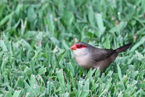 É originário de África e pensa-se que a sua existência em Portugal é devida a fuga de cativeiro. Os primeiros registos desta espécie em liberdade foram na Lagoa de Óbidos, em 1964. A partir daí, rapidamente se expandiu por todo o território nacional. É uma ave de pequeno porte, que possui uma característica mascarilha vermelha. Tem comportamentos gregários, ou seja, agrupa-se frequentemente, formando grandes bandos. Alimenta-se à base de pequenas sementes e frequenta habitats muito diversos, desde campos, ribeiras, caniçais, canaviais, hortas e até áreas urbanas. Em Guimarães, é relativamente fácil de observar bandos de Bicos-de-lacre voando freneticamente pelo Parque da Cidade ou na Veiga de Creixomil.